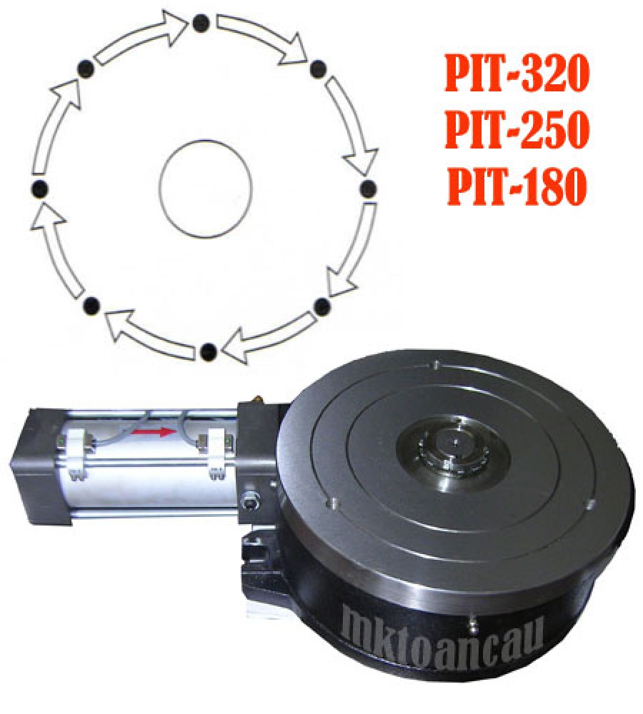 Bàn xoay chi tiết dùng hơi khí nén KTK Đài Loan có 3 model PIT-180, PIT-250, PIT-320 KTK. Bàn xoay có nhiều vị trí khác nhau và được sản xuất theo yêu cầu. Bàn xoay chi tiết dùng nhiều trong các dây chuyền sản xuất tự động, các tổ hợp sản xuất.