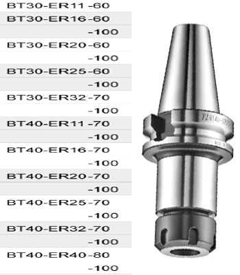 Ngoài loại chuôi cán dao BT30-ER còn loại chuôi cán BT40-ER gồm các model BT40-ER11-70, BT40-ER11-100, BT40-ER16-70, BT40-ER16-100, BT40-ER20-70, BT40-ER20-100,, BT40-ER25-70, BT40-ER25-100, BT40-ER32-70, BT40-ER32-100, BT40-ER40-80, BT40-ER40-100,