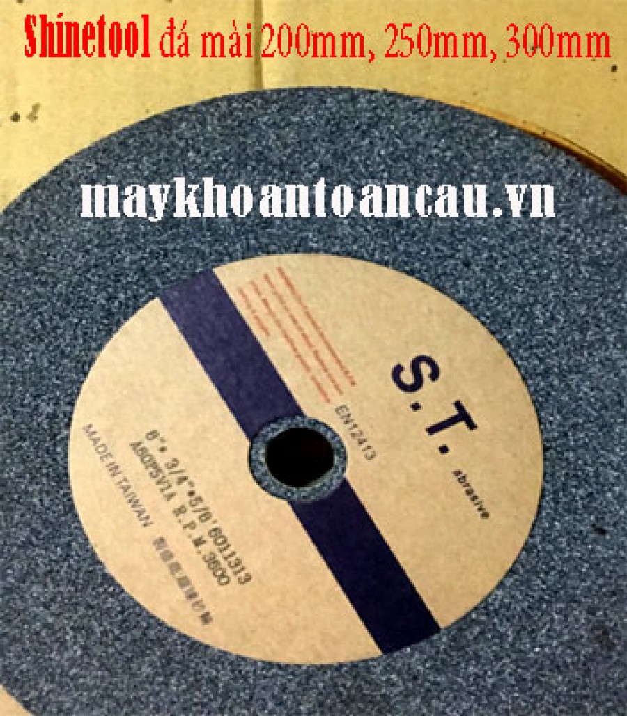 Đá mài 200mm 250mm 300mm gồm 2 hiệu Tailin hoặc ST (đá xanh) Đài Loan, tùy theo loại mà có lỗ cốt đá và độ dày đá khác nhau. Đối với đá đường kính 200mm lỗ cốt gần 16mm (15.888mm), đối với đường kính đá 250mm và 300mm lỗ cốt 25.4mm.