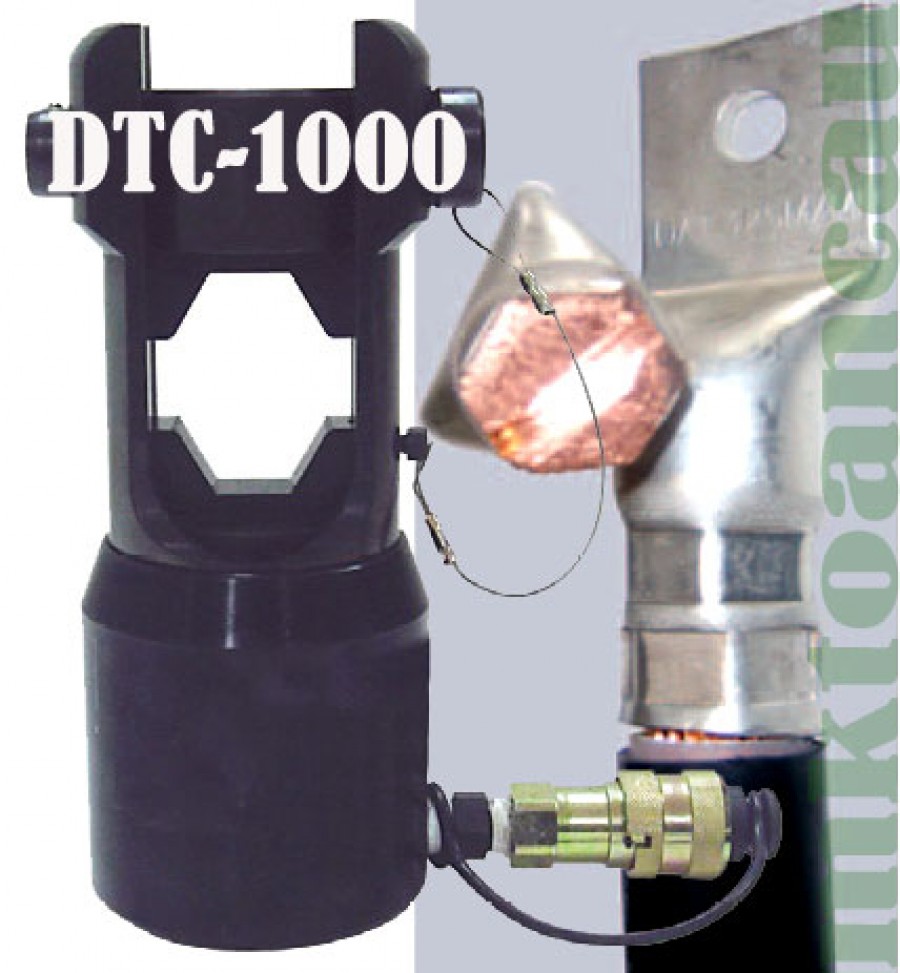Đầu ép cos thủy lực 45 tấn DTC-1000 có kiểu dáng thiết kế giống DTC-630, nhưng khả năng làm việc lớn hơn. Khuôn ép kiểu lục giác và được tính theo bộ khi người dùng đặt hàng mua.