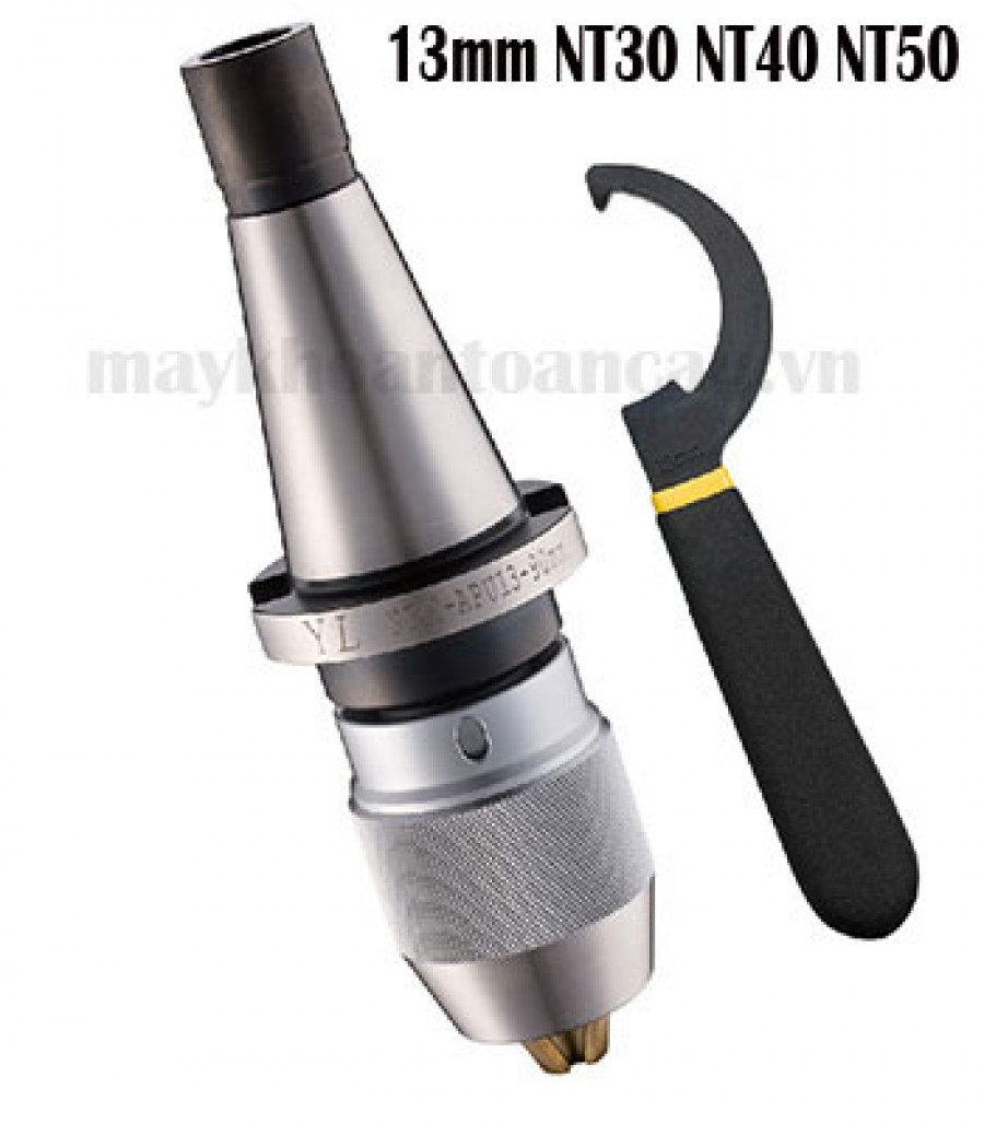 Đầu kẹp khoan 13mm cán NT30 NT40 NT50 cho phép cặp mũi khoan sắt 1.5-13mm được ứng dụng trên các loại máy phay cơ hoặc máy phay CNC. Bộ đầu khoan này gồm 2 phần là đuôi cán NT và đầu kẹp mũi khoan.
