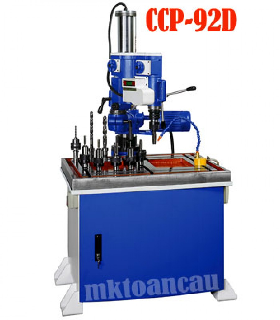 Máy khoan đứng có ta rô CCP-92D có phần đầu máy là model CCP-92L. Nhà sản xuất chỉ thiết kế thêm phần bàn gia công và trụ máy. Nếu tháo phần đầu máy và lắp thêm đế từ sẻ trở thành máy khoan tư