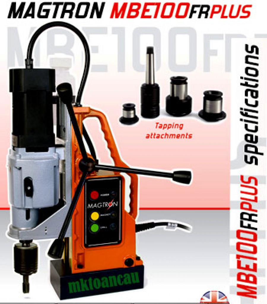 Máy Khoan từ có ta rô MBE-100FRPLUS Anh Quốc (UK) là loại khoan từ đa năng công suất lớn, ngoài chức năng khoan khoét còn cho phép ta rô từ M8-M30. Model máy này thích hợp làm việc trong môi trường chế tạo máy, khuôn mẩu, thép kết cấu.