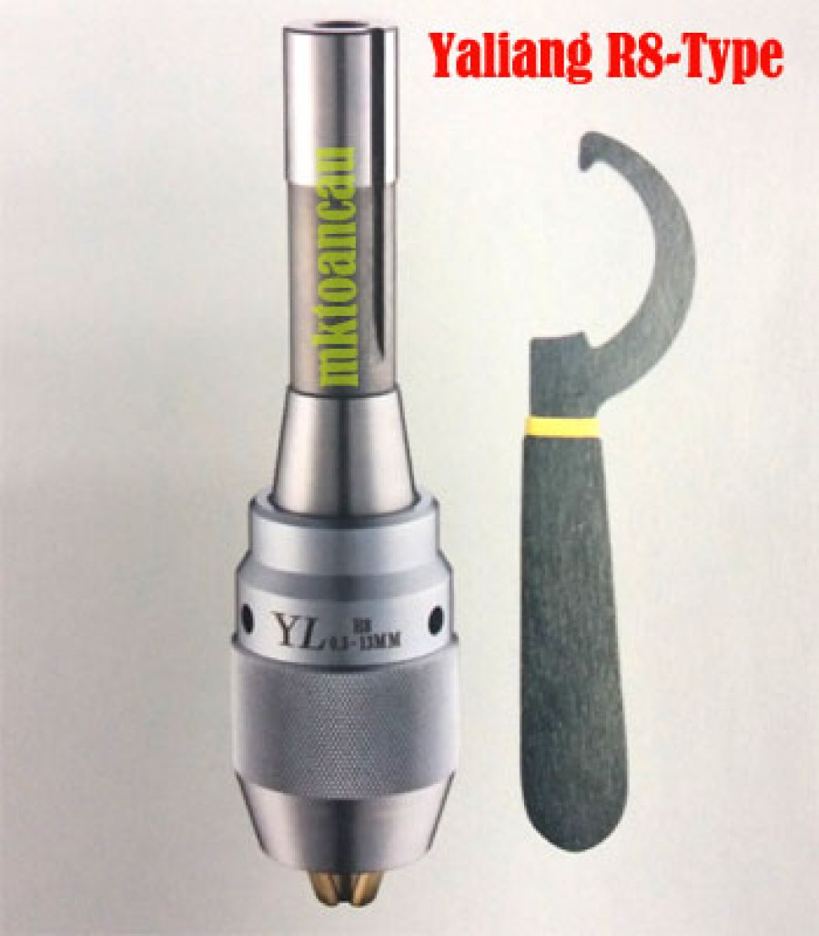 Măng-ranh 13mm 16mm chuôi cán R8 Yaliang Đài Loan là loại bầu khoan không chìa kiểu lắp nhanh nhưng có kèm theo cả chuôi cán chuẩn R8 với 2 model 11008-13S và 11--8-16-16S, Khả năng cặp 0.3-13mm và 3-16mm.