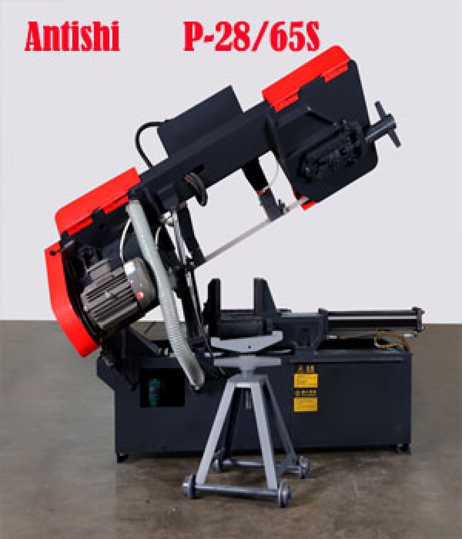 Máy cắt phôi thép 4Hp P-28/65S Antishicnc Trung Quốc thiết kế chuyên dùng cắt thẳng (thường gọi là cắt góc 00 hoặc 900). Máy cắt các loại phôi thép, thép khôi, ống thép, thép hộp, các loại cây thép đặc. Máy vận hành kiểu bán tự động bằng thủy lực.