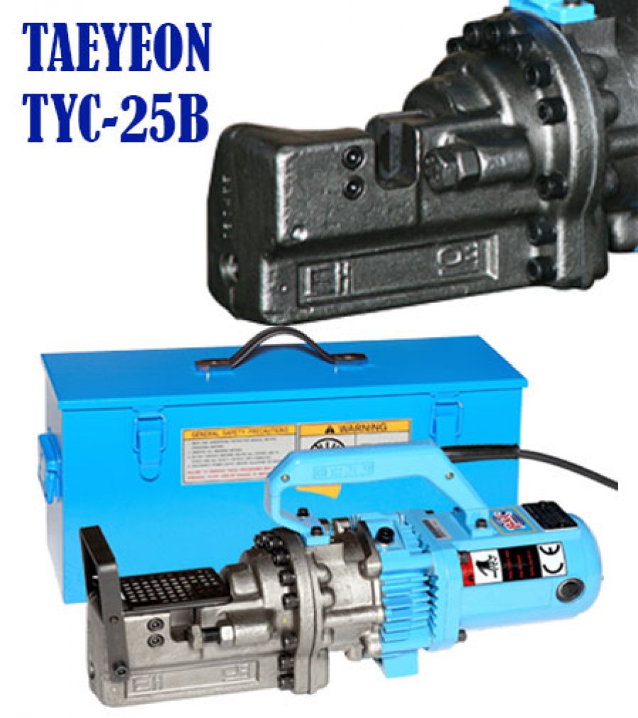 Máy cắt sắt cầm tay TYC-HD25B (TYC-NHD25), Teayeon Hàn Quốc công suất 2.5Kw thiết kế kiểu cầm tay, dể di chuyển, cho phép cắt mổi lần nhiều cây. Khả năng cắt sắt phi 25mm, 24mm, 23mm, 22mm, 21mm, 20mm, 19mm, 18mm, 17mm, 16mm, 15mm, 14mm, 13mm, 12mm, 11mm, 10mm, 9mm, 8mm, 6mm.