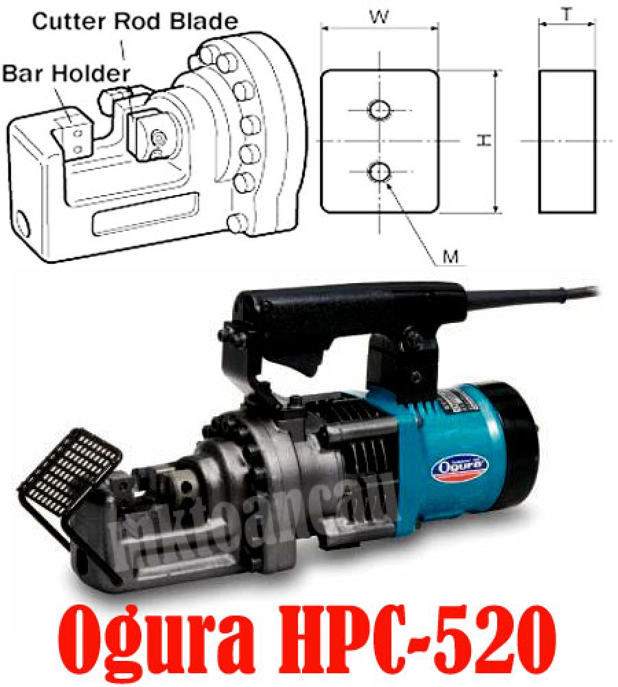 Máy cắt sắt xây dựng HBC-520 Ogura Nhật, thiết kế kiểu cầm tay, công suất 1330W, nặng 12.2Kg, cắt sắt cây 20mm, 19mm, 18mm, 17mm, 16mm, 15mm, 14mm, 13mm, 12mm, 11mm,10mm, 9mm, 8mm, 600. Cho phép cắt mổi lần nhiều cây.