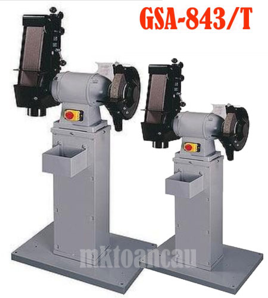 Máy chà nhám băng kết hợp đá GSA-843/T là loại công suất nhỏ với đường kính đá 200mm. Trong khi đó GS-1043 có cùng kiểu thiết kế nhưng đường kính đá là 250mm. Cả 2 model này đều dùng điện 3 phase.