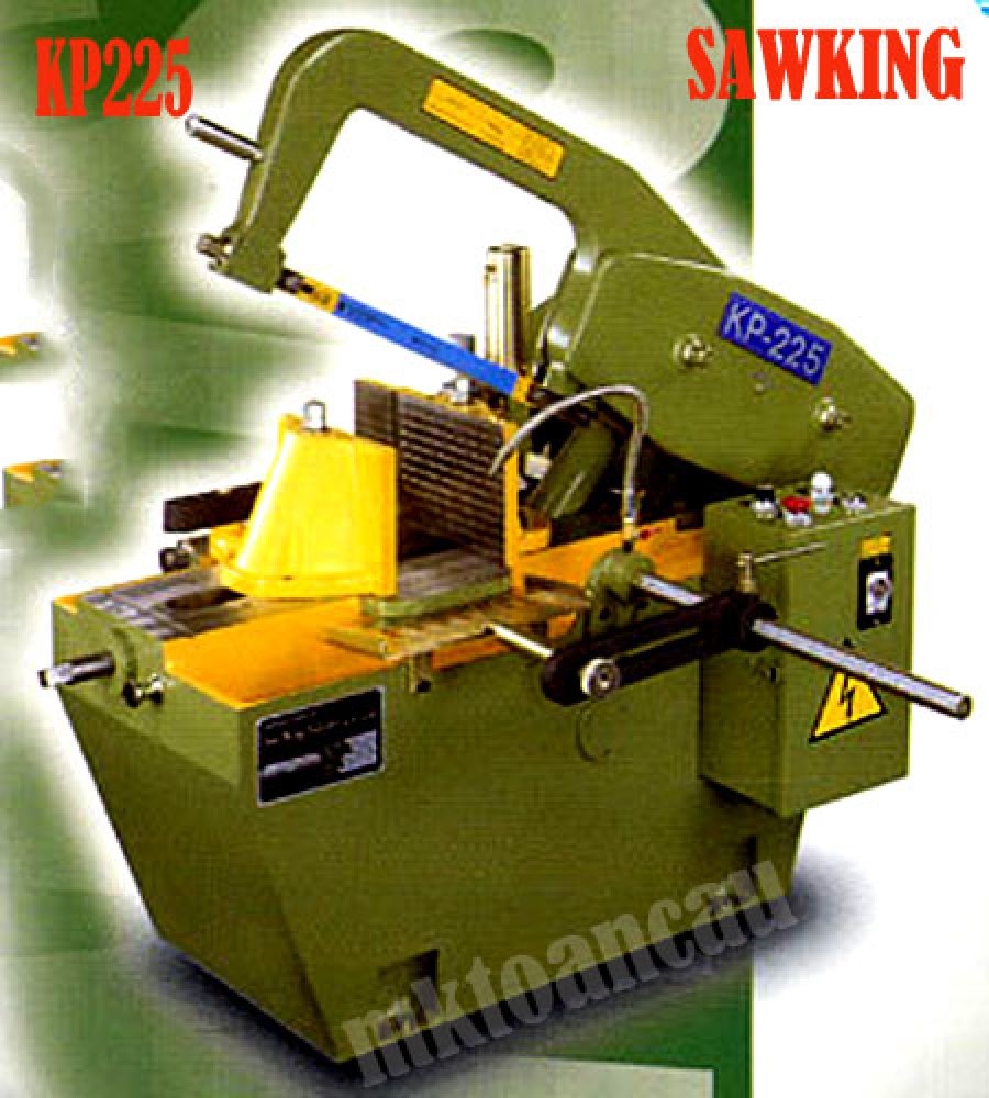 Máy cưa cần Đài Loan KP225 Sawking thiết kế kiểu cưa nằm ngang, vận hành thủy lực, chuyên cắt phôi thép, sắt cây, sắt hộp đặc và rổng. Motor 2HP có 3 cấp tốc độ, truyền động cưa kiểu nâng hạ thủy lực và trục khủy.