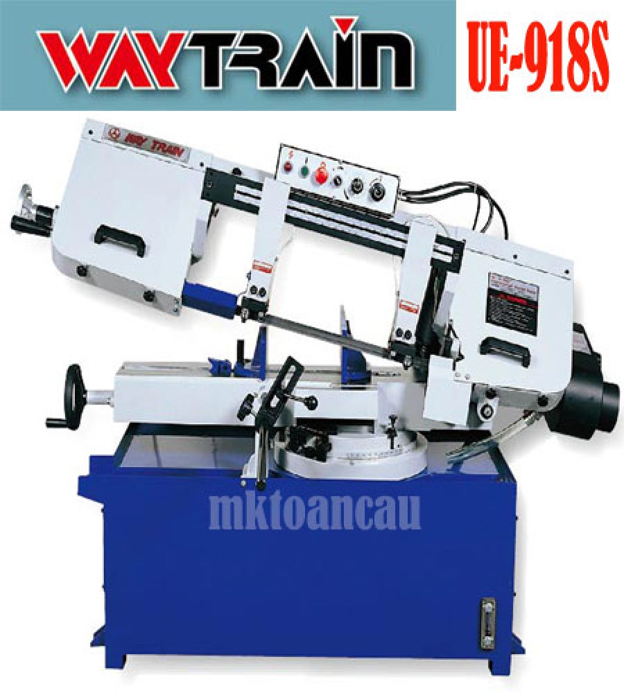 Máy cưa kim loại 2Hp UE-918S Waytrain Đài Loan là loại cưa vòng ngang chuyên dùng cưa kim loại vận hành Manual. Máy truyền động kiểu Pulley nhưng điều chỉnh tốc độ vô cấp thay cho loại có cấp thông thường. Máy cho phép cắt sắt tròn, sắt hộp các loại 225mm, 225x430mm, 150x450mm, 225x295mm.