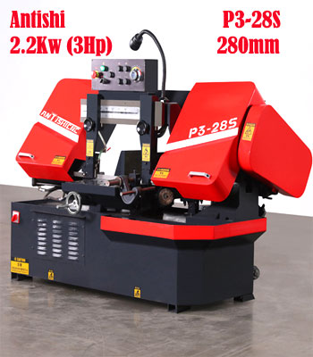 Máy cưa vòng 3Hp 280mm P3-28S Antishicnc Trung Quốc là loại thiết bị chuyên dùng cưa cắt kim loại như ống thép, thép hộp, các loại cây thép đặc tròn hoặc vuông, thích hợp dùng trong các ngang sản xuất như khuôn mẩu, chế tạo máy, gia công cơ khí.