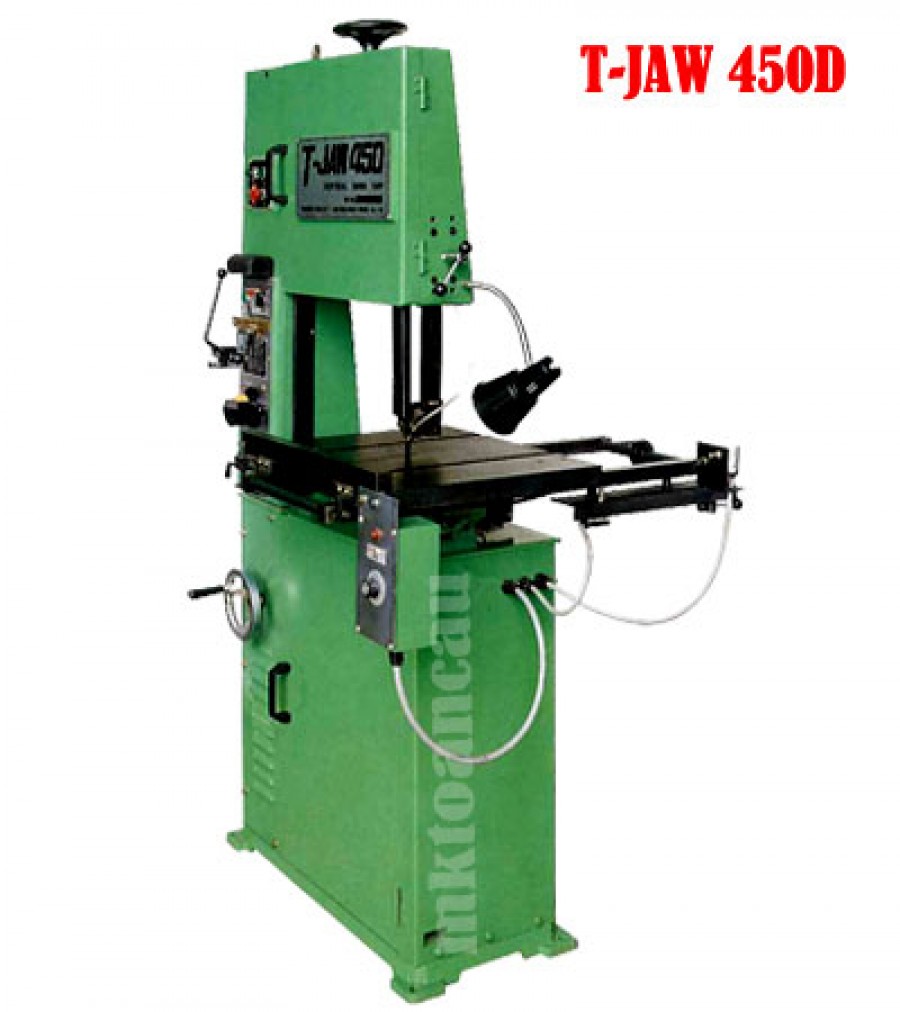 Máy cưa 450D thiết kế bàn tự động nhưng model T-JAW 450 có kiểu bàn cố định phải dùng tay di chuyển chi tiết. Tuy theo nhu cầu sử dụng mà người mua có thể chọn loại bàn tự động hoặc cố định.