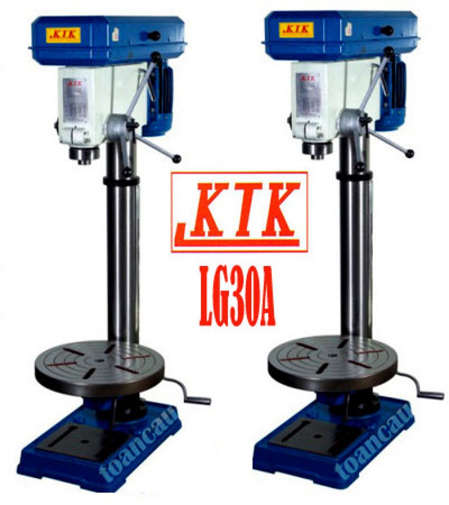 Máy khoan bàn 30mm LG30A, khoan đứng 30mm KTK Đài Loan truyền động kiểu 3 Puli với Motor 3HP. Máy được thiết kế với trục 9 côn MT4 cho phép lắp trực tiếp mũi khoan đuôi côn và các loại đầu khoan 2 mũi, 3 mũi, 4 mũi, 5 mũi, 6 mũi.