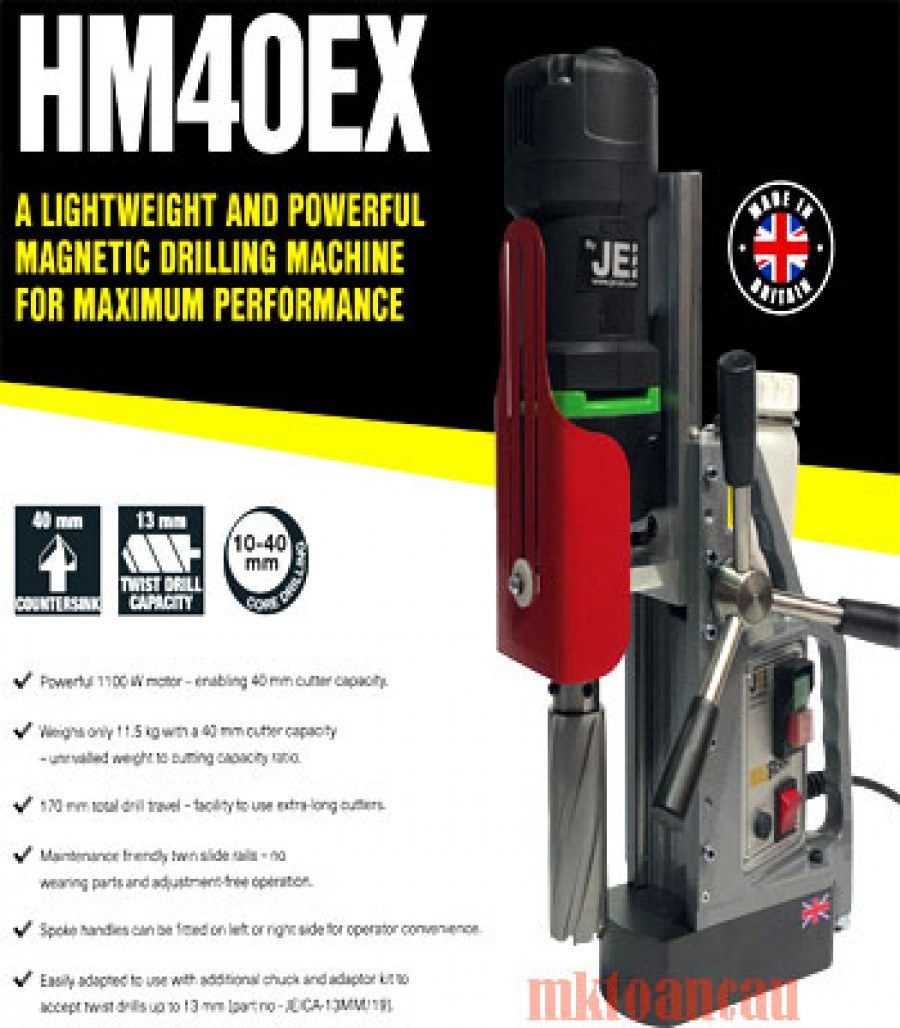 Máy khoan đế từ xoay HM-40EXS JEI Anh Quốc là loại khoan từ cở nhỏ chuyên dùng khoan hoặc khoét lỗ kim loại có đường kính dưới 40mm. Điểm đặc biệt của model này là thân máy cho phép xoay 360