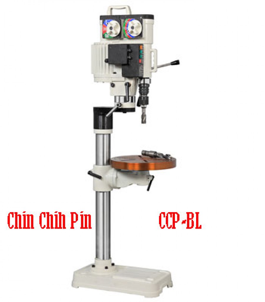Máy khoan đứng 3HP 9 tốc độ CCP-BL Chin Chih Pin Đài Loan cho phép thực hiện khoan 6-42mm và ta rô M8-M42. Máy thiết kế hoàn toàn bằng cơ, thay đổi tốc độ kiểu cấp số bánh răng, trục chính để lắp dao cụ kiểu lắp nhanh, có bảo vệ quá tải.