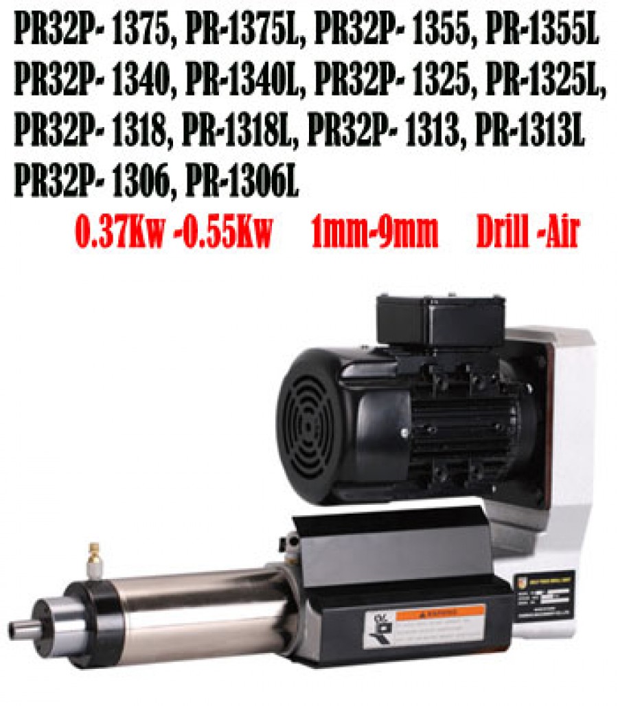 Máy khoan Purros PR-32P là dòng seri gồm các model là dòng seri gồm nhiều model PR32P- 1375 (1mm - 7500v/p - 100mm), PR-1375L (1mm - 7500v/p - 150mm), PR32P- 1355 (1.5mm - 5500v/p - 100mm), PR-1355L (1.5mm - 5500v/p - 150mm), PR32P- 1340 (2mm - 4000v/p -100mm), PR-1340L (2mm - 4000v/p - 150mm), PR32P- 1325 (3.5mm - 2500v/p - 100mm), PR-1325L (3.5mm - 2500v/p - 150mm), PR32P- 1318 (5mm - 1800v/p - 100mm), PR-1318L (5mm - 1800v/p - 150mm), PR32P- 1313 (6mm - 1300v/p - 100mm), PR-1313L (6mm - 1300v/p - 150mm), PR32P- 1306 (9mm - 600v/p - 9mm), PR-1306L (9mm - 600v/p - 150mm).