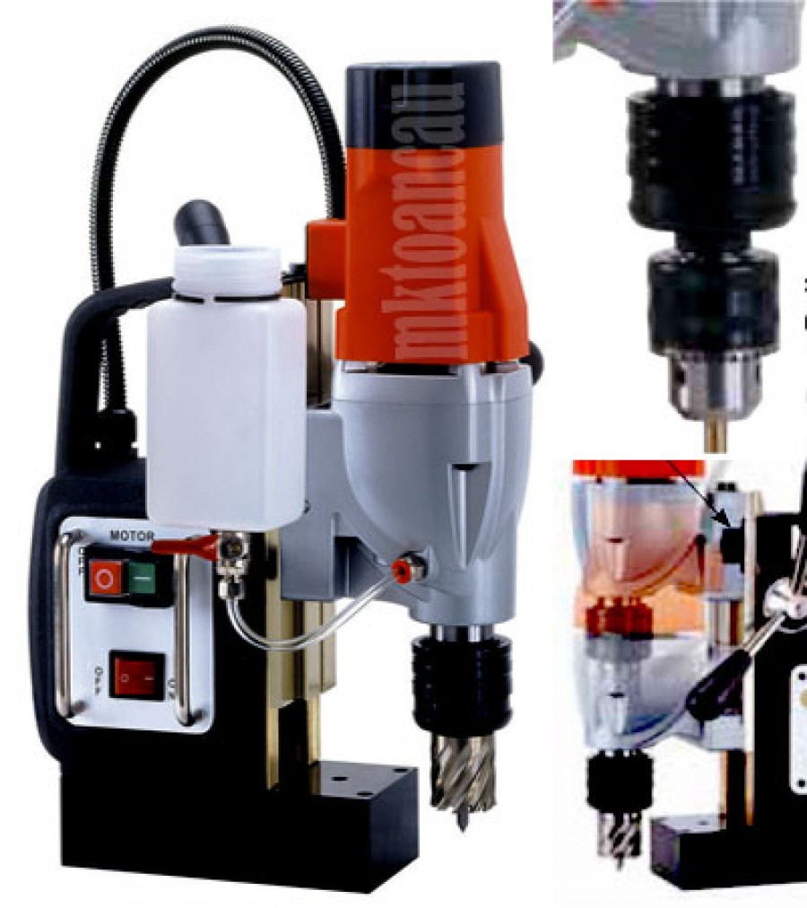 Máy khoan từ AGP SMD352, SMD502 Đài Loan có 2 cấp số cơ, dùng mũi khoan từ thép gió HSS và hợp kim TCT. Khoét lỗ 50mm, 48mm, 46mm, 44mm, 42mm, 40mm, 38mm, 36mm, 34mm, 32mm, 30mm, 28mm, 26mm, 24mm, 22mm, 20mm, 18mm, 16mm, 14mm, 12mm.