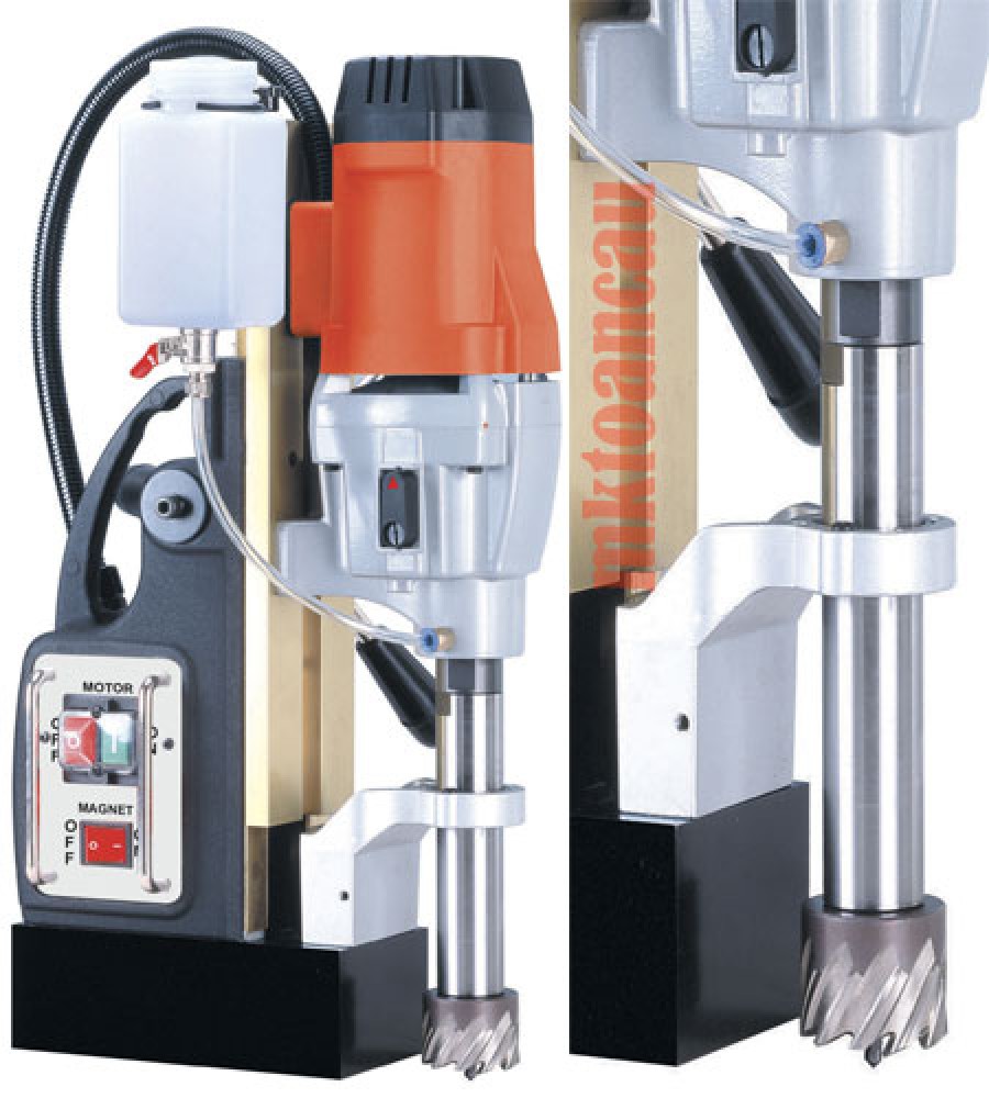 Máy khoan từ Đài Loan MD500/2 AGP có khả năng làm việc tương đương SMD502, ST-50 nhưng công suất lớn hơn và kiểu trục chính khác nhau. SMD502 trục chính kiểu lắp nhanh, MD500/2 trục chính kiểu ren.