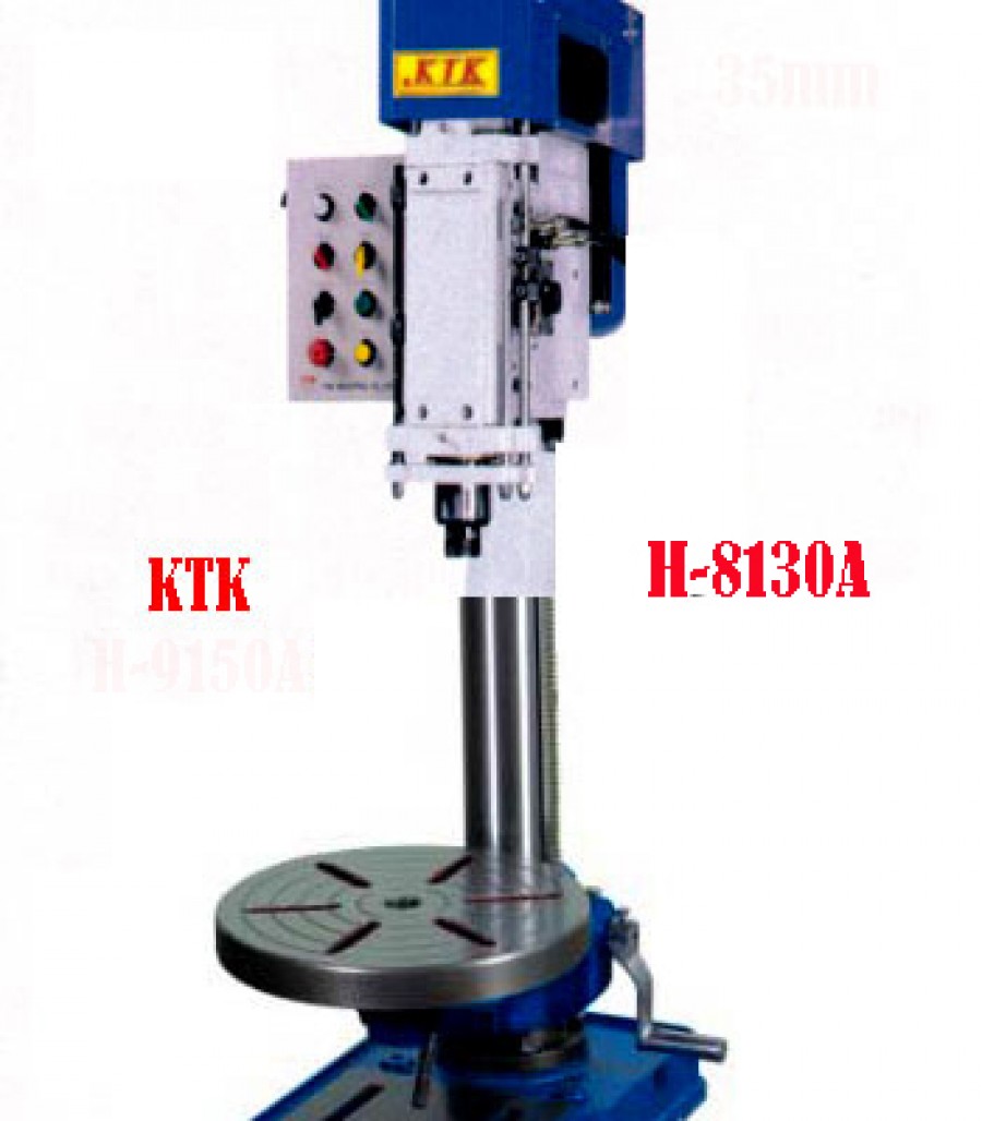 Với model H-8130 bàn khoan được thiết kế trên một chân máy kiểu hình hộp, trên bàn có vách ngăn chắn nước, vòi phun nước, có bơm nước làm máy 1/8Hp kèm theo. Model này thích hợp khoan các vật liệu cứng hoặc kếp hợp các đồ gá tự động.