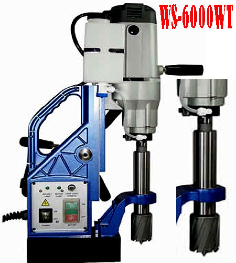 Máy khoan từ WS-6000M WS Miyanach Đài Loan, thiết kế chuyên dùng khoét lỗ kim loại bằng mũi khoan từ sâu 75mm, phi 60mm, 58mm, 56mm, 54mm, 52mm, 50mm, 48mm, 46mm, 44mm, 42mm, 40mm, 38mm, 36mm, 34mm, 32mm, 30mm, 28mm, 26mm, 24mm, 22mm, 20mm, 18mm, 16mm, 14mm, 12mm.
