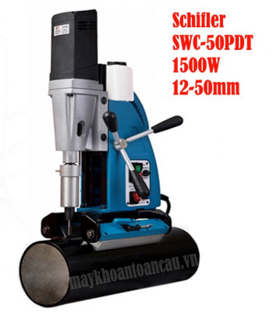 Máy khoét lỗ 50mm trên ống SWC-50PDT Schifler được thiết kế đặc biệt dùng loại đế từ vĩnh cửu thay cho kiểu đế từ điệng thông thường. Đế từ cho phép điều chỉnh mặt cong tùy theo từng loại ống mà không sợ bị cháy do không dùng điện.