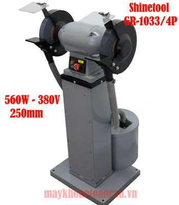 Máy mài 2 đá 560W 250mm GR-1033/4P Shinetool Đài Loan là loại thiết bị chuyên dùng mài các vật liệu kim loại. tốc độ mài 1450v/p, sử dụng đá mài với cở hạt A46 và A60, máy có thể kết hợp với máy hút bụ kim loại 3 phase 380V/3 phase DCP-2503.