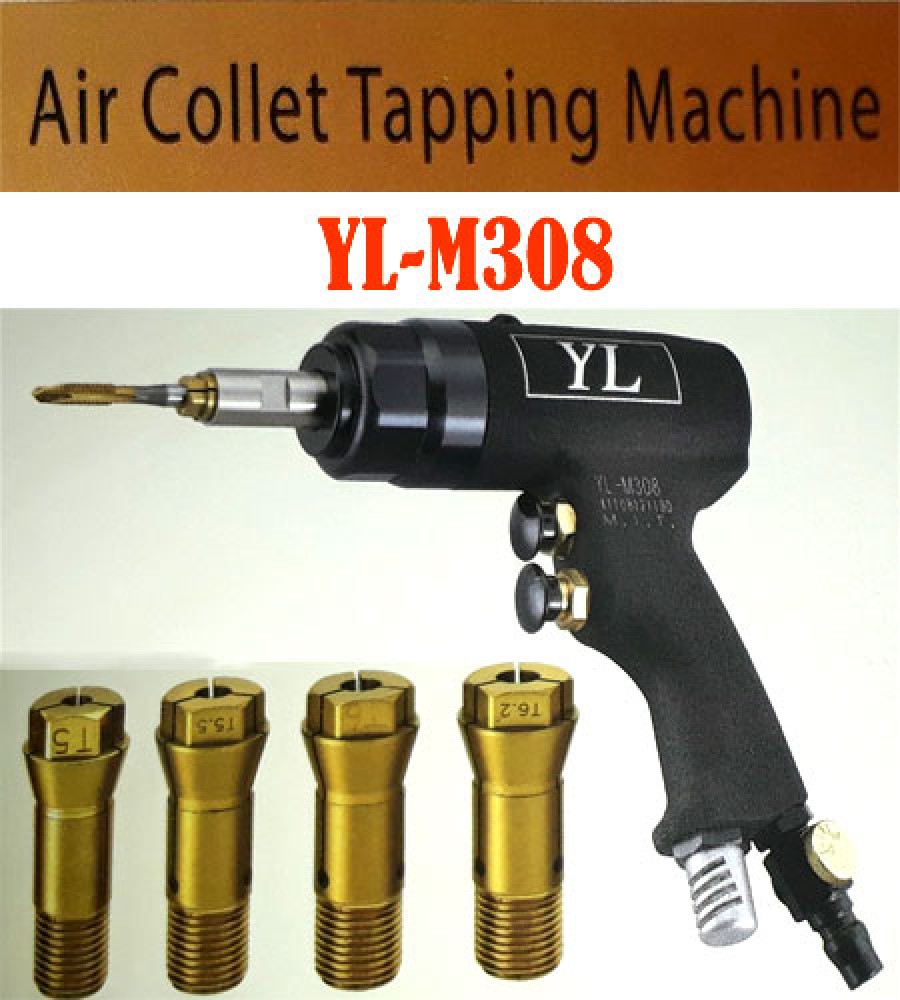 Máy ta rô cầm tay M3-M8 YL-M308 Yaliang Đài Loan là loại máy taro dùng hơi khí nén loại nhỏ cho phép ta rô trên các loại vật liệt nhẹ như sắt, thép trung bình, Nhôm, Đồng. Máy có kèm theo các loại đầu cặp mũi taro kiêu Collet vặn ren. ( khác với Collet kiểu lắp nhanh).