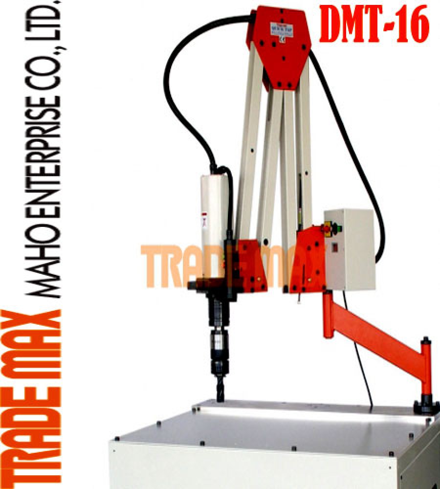 Máy ta rô cần dùng điện DMT-16 Trademax Đài Loan là loại thiết bị ta rô công suất nhỏ 400W/ 220V/ 1 pha Khả năng ta rô kim loại sắt thép Inox từ M16, M14, M12, M10, M8, M6, M5, M4, M3. Tuy nhiên trên thép trắng, thép khuôn mẩu, Inox khả năng ta rô sẽ giảm hơn so với thép trung bình.