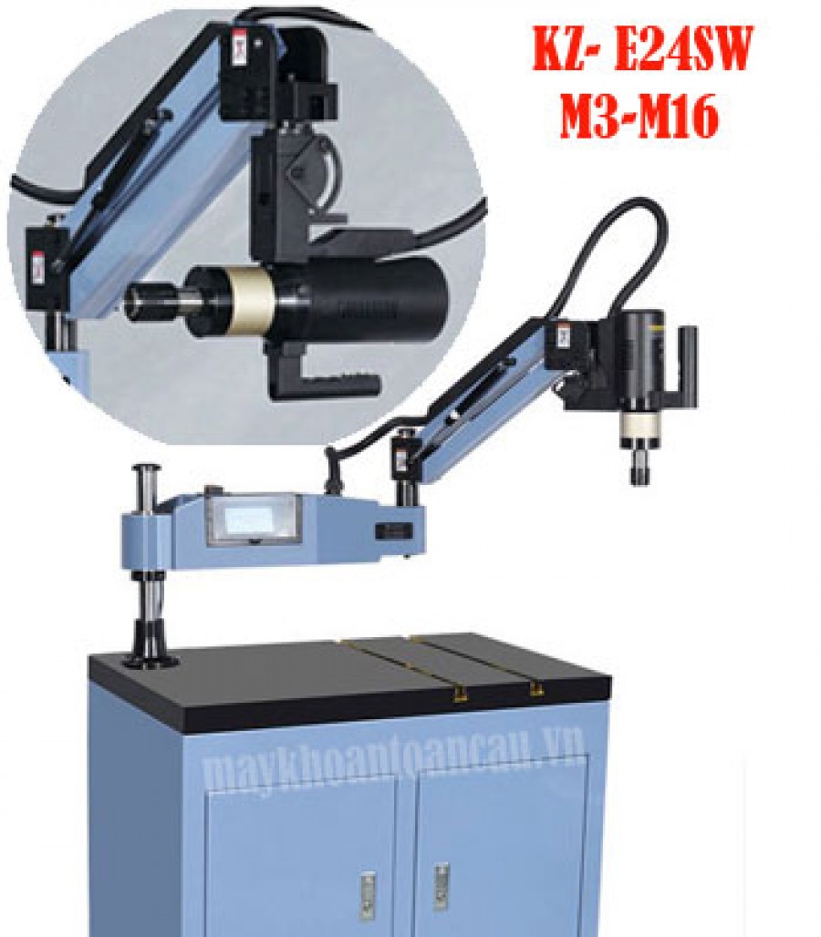 Máy ta rô đứng ngang M3-M16 KZ-E16SW Haicheng China là loại thiết bị ta rô cần giá rẻ thích hợp hia công lỗ ren trên các loại vật liệu như sắt, thép, Inox, Nhôm, Đồng, Thau....cho phép ta rô tốt nhất M3, M4, M5, M6, M7, M8, M9, M10, M11, M12, M13, M14, M15, M16.