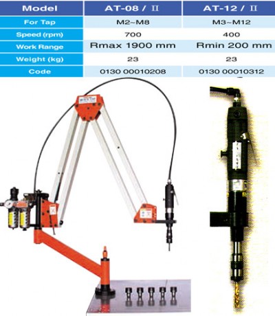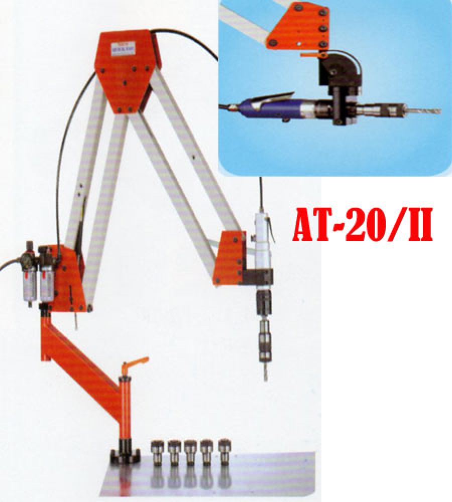 Máy ta rô M3-M20 AT-20/II được cung cấp đồng bộ gồm cần taro (kiểu cần đôi) có kèm ben hơi, bộ lọc khí, châm dầu tự động, động cơ khí nén, trụ lắp đặt máy. Đặc biệt có kèm theo 6 Collet cặp mũi ta rô. (giống như model