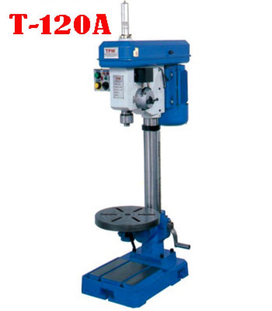 Máy ta rô tự động T-120A KTK Đài Loan công suất 2HP/380V/3p/50Hz có 3 cấp tốc độ, cho phép ta rô M4-M20, kiểu thiết kế đơn giản dễ sử dụng và giá thành thấp, bàn ta rô kiểu tròn hoặc vuông có rãnh lắp gá kẹp phôi, ê-tô...