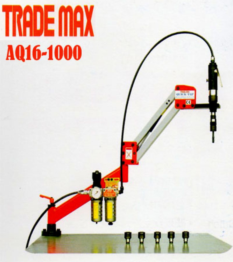 Máy taro cần AQ16 Trademax Đài Loan tên model AQ16-1000, cho phép taro trên mọi vật liệu kể cả Inox. Khả năng taro M3-M16, tầm hoạt động của cần dài 100mm, cho phép làm việc theo nhiều phương khác nhau, có kèm theo 6 Collet theo chuẩn JIS, DIN, ISO.