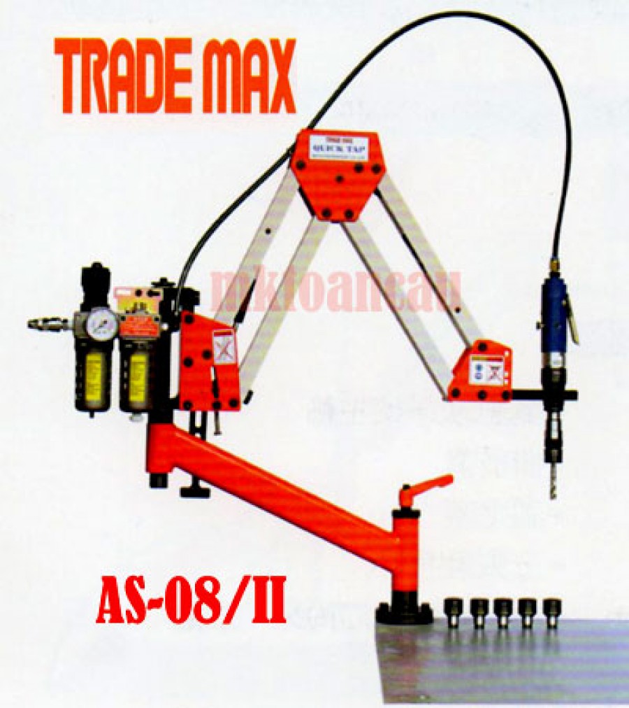 Máy taro khí nén AS-08, AT08, AQ08 Trademax Đài Loan có khả năng taro giống nhau M8, M6, M5, M4, M3, M2, nhưng phạm vi làm việc của cần khác nhau. Đây là máy taro cần khí nén công suất nhỏ nhất củ seri máy taro cần Trademax.
