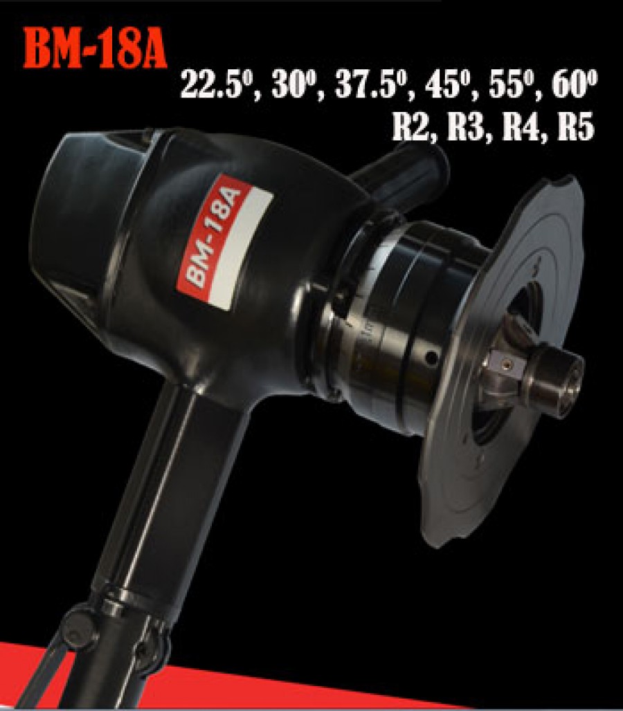 Máy vát góc bo cạnh R dùng hơi BM-18A cho phép vát trong và ngoài thành ống, đường kính ống nhỏ nhất là 40mm, nếu vát tấm thép thì độ dày cần thiết nhỏ nhất là 2mm. Nếu người dùng cần loại máy dùng động cơ điện có thể chọn
