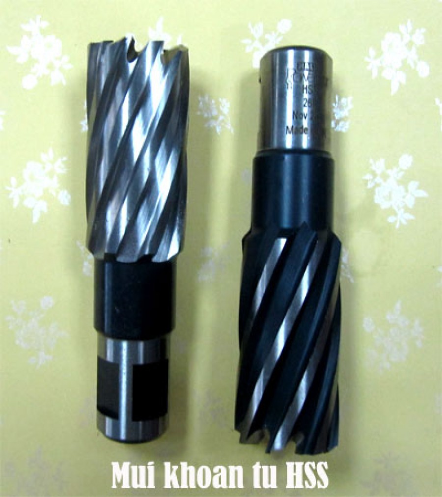mũi khoan từ hợp kim TCT. Loại này chuyên dùng cắt các loại vật liệu cứng ( ngoại trừ đường ray và Inox).